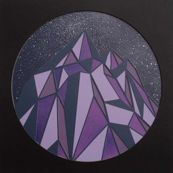 Mountains, Midnight Purple 6 layers laser cut paper with spray paint